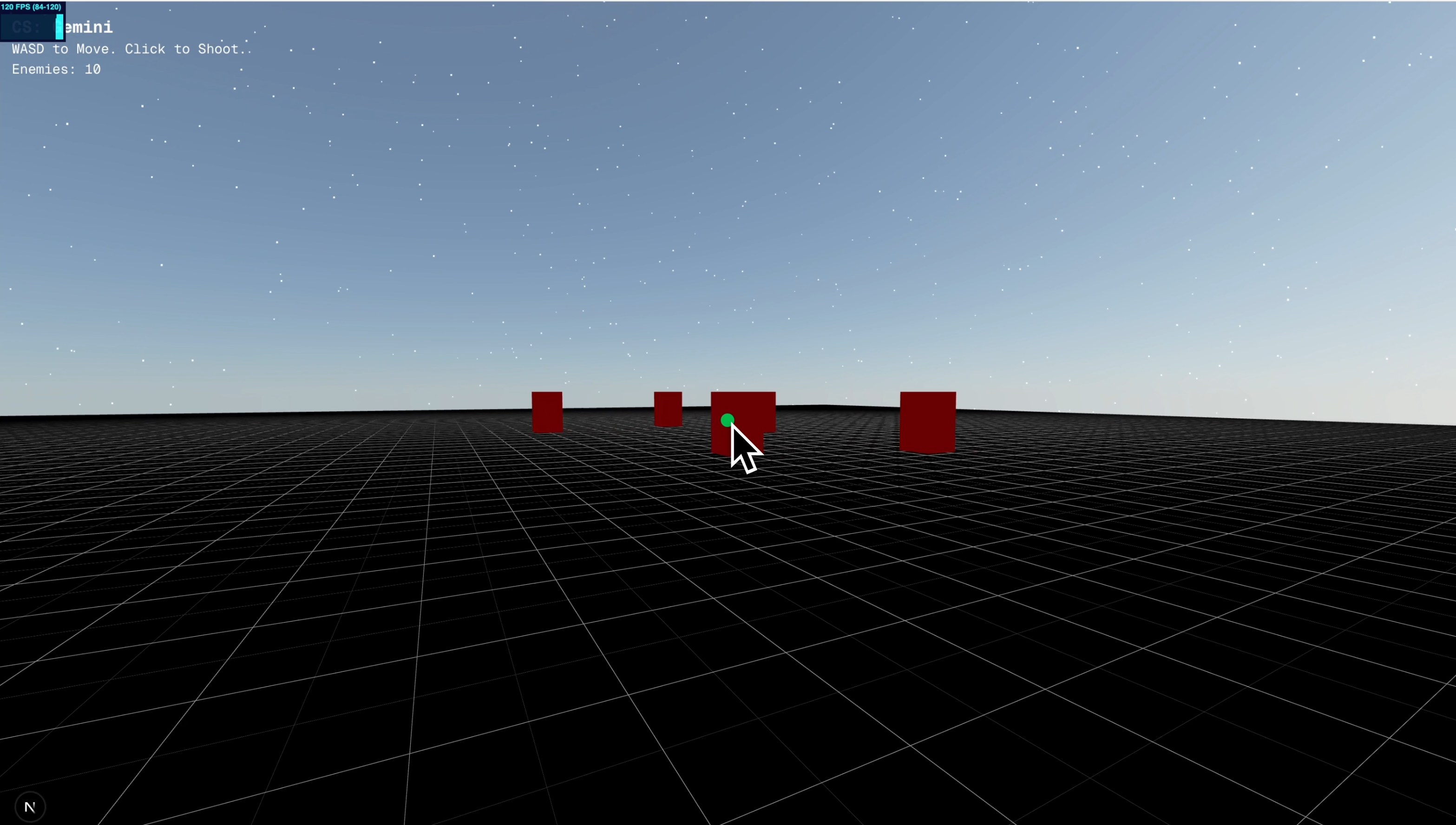For the first version, just make the main character a first-person view with a cross hair. Put enemies at random places. Enemies have HP. You can shoot them, and kill them. When an enemy is killed, they respawn.